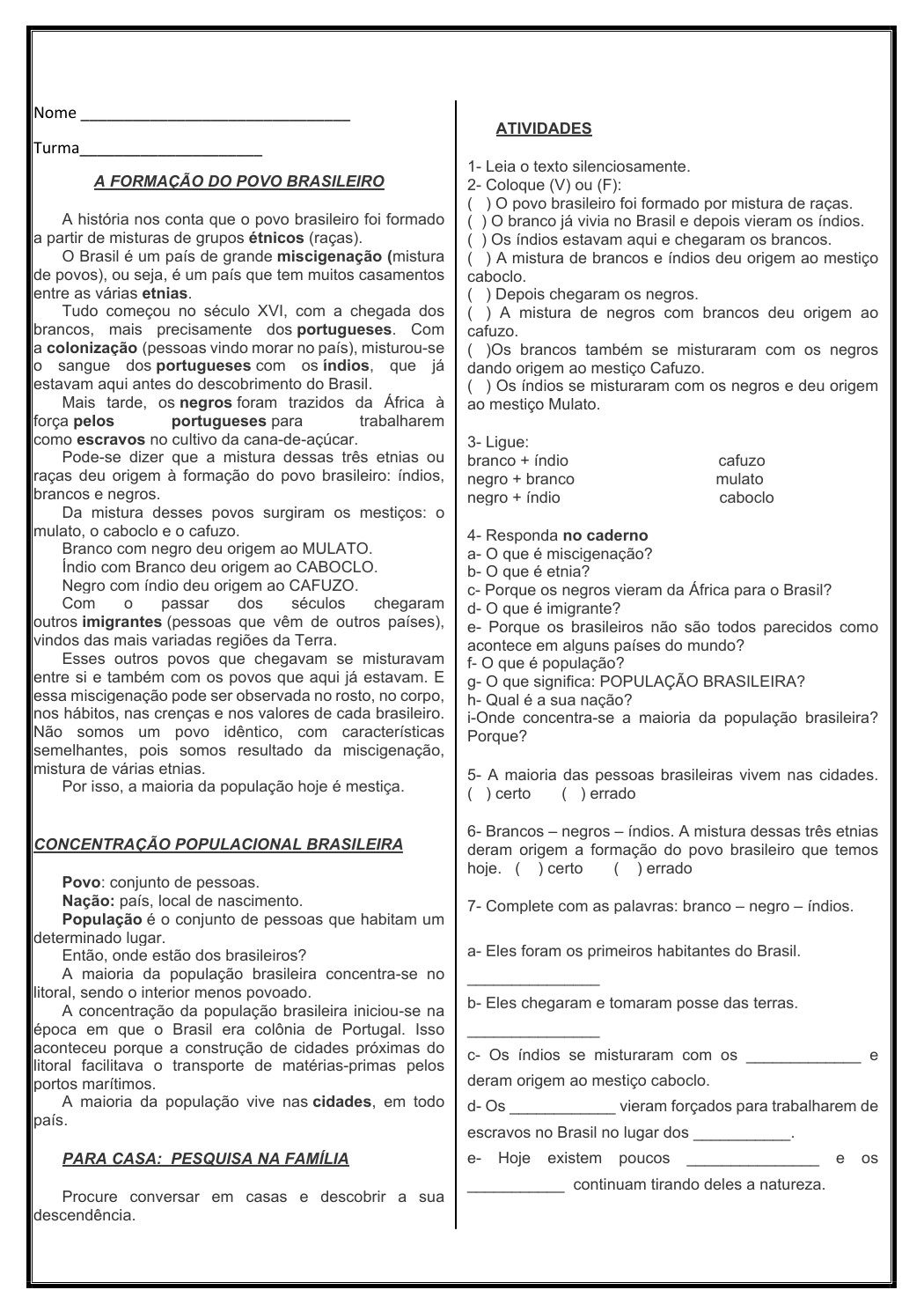 Atividade De Historia 5 Ano A Formação Dos Primeiros Povos