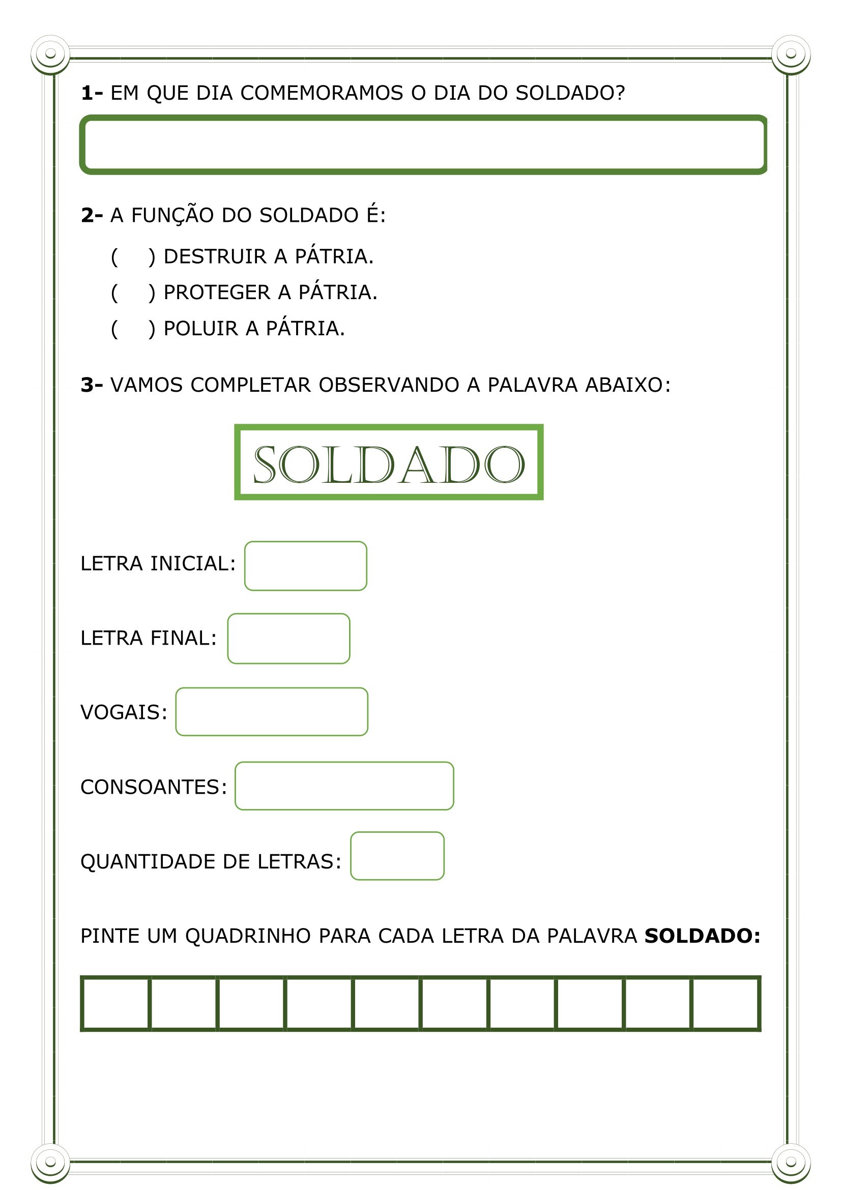 Atividade interativa dia do soldado - Materiais Para Profes: Seu Portal
