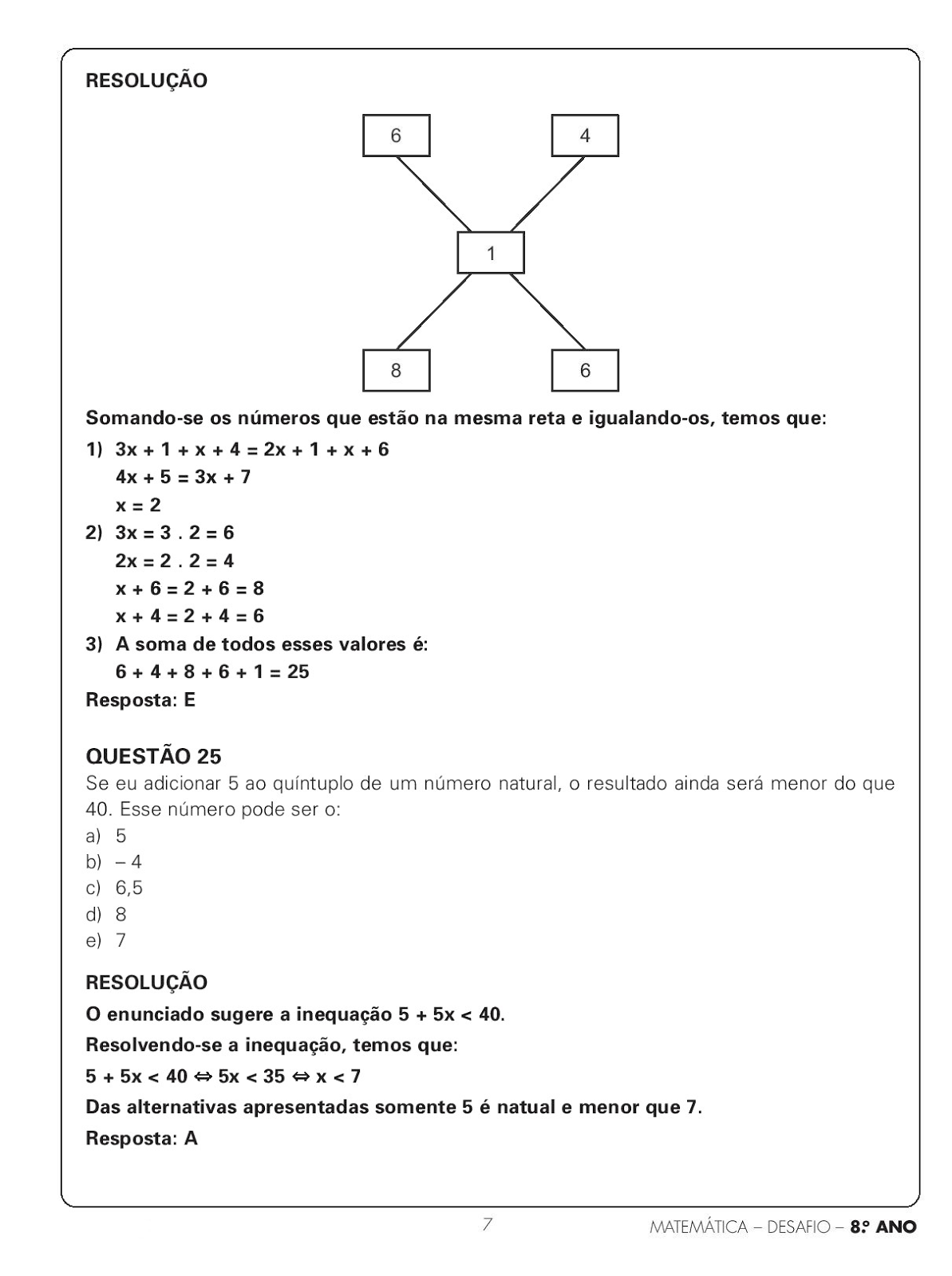 Atividades De Matemática 8 Ano Para Imprimir Com Gabarito