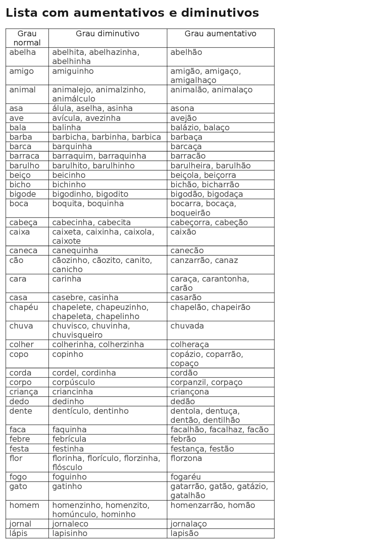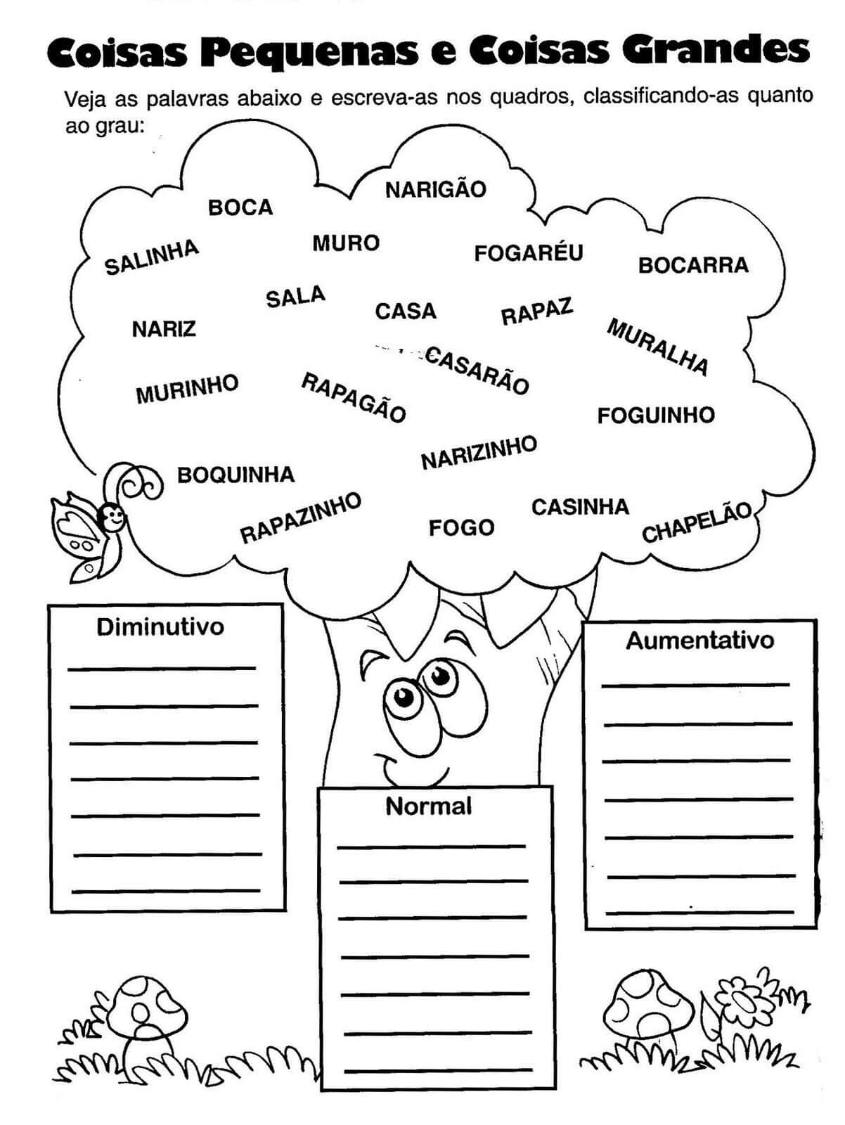 Escola Saber: Atividades de português aumentativo e diminutivo