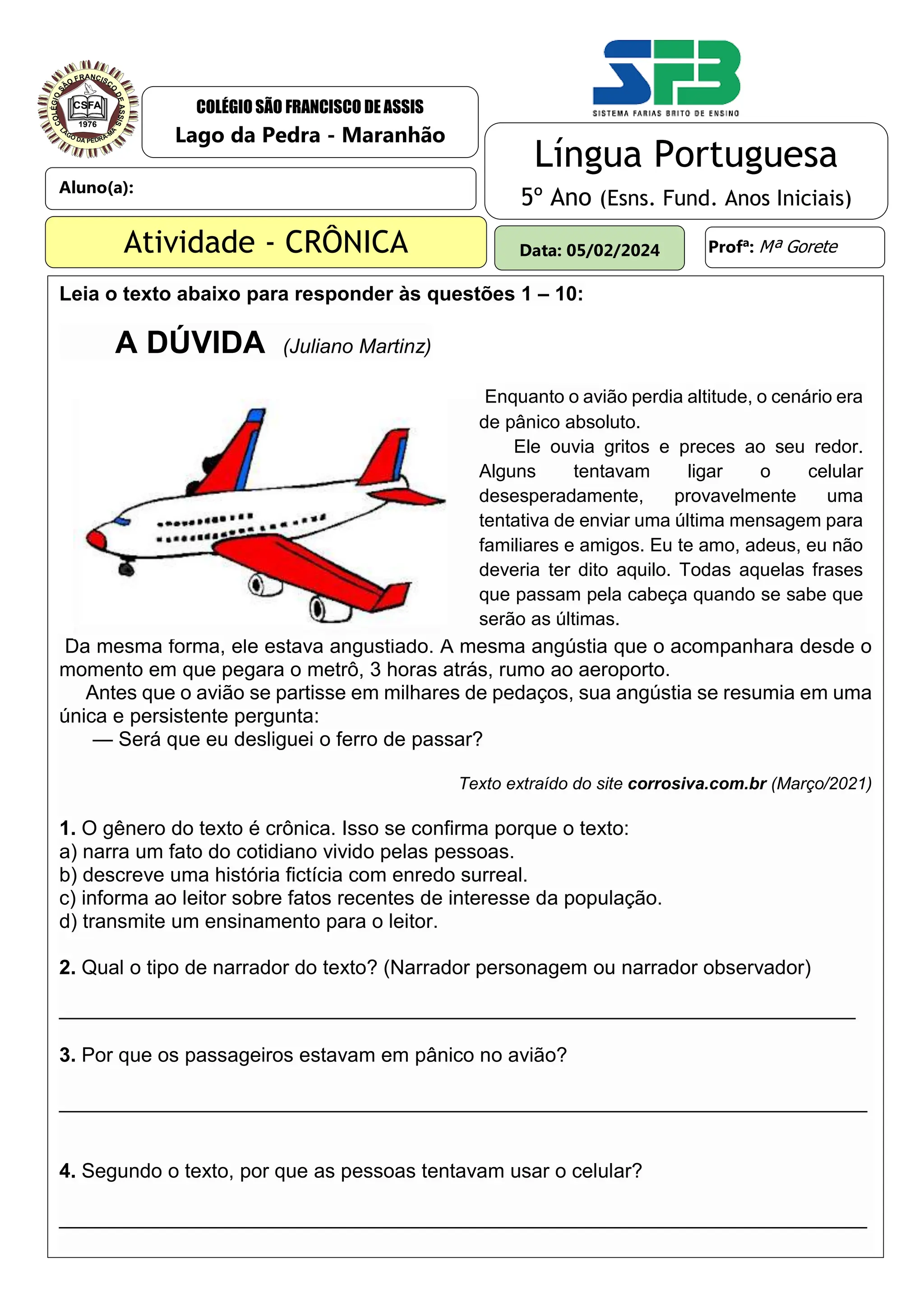 Cronica Para 5 Ano