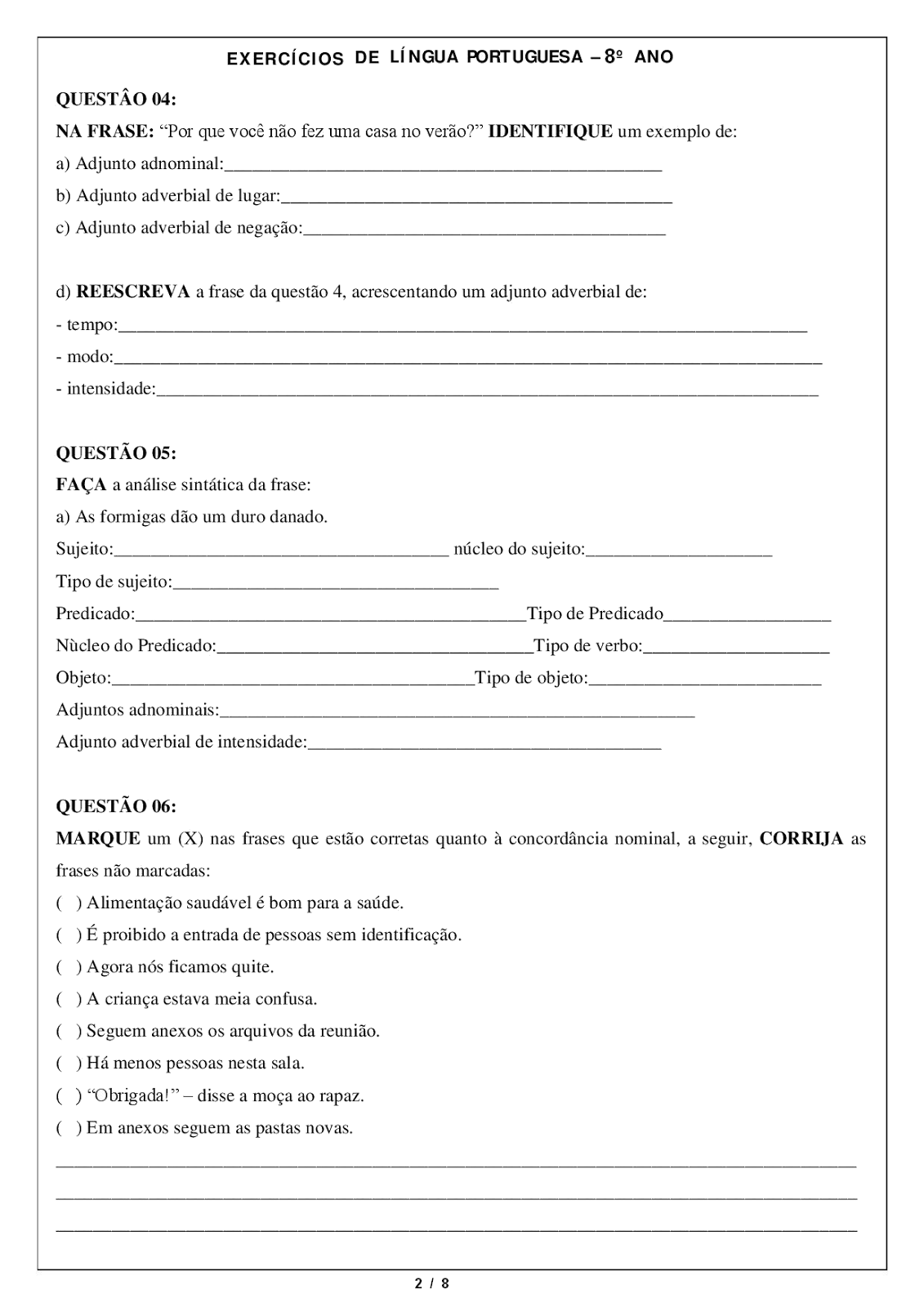 Exercícios De Adjunto Adverbial Para 7 Ano Com Gabarito - EDUKITA