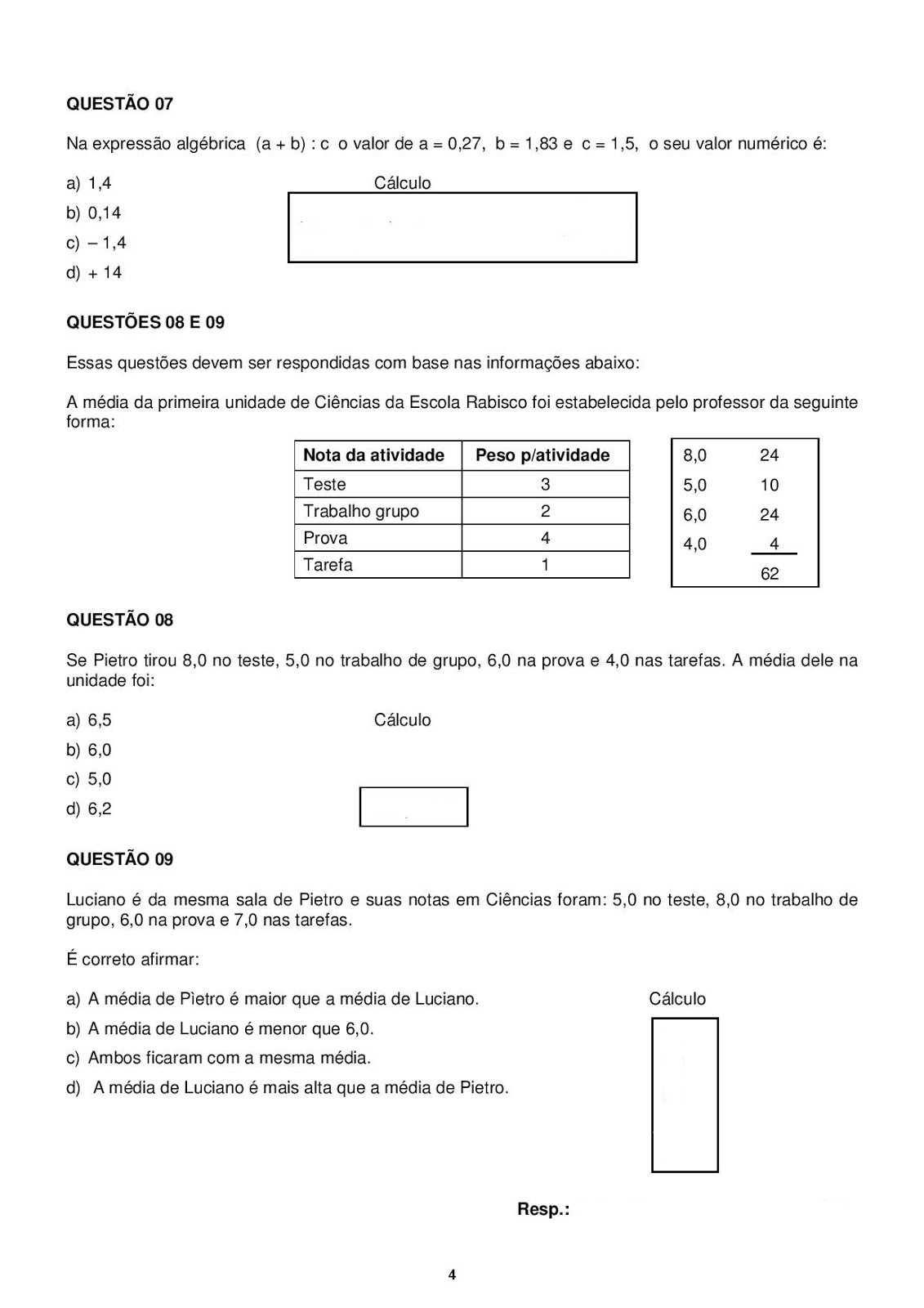 Exercicios De Matematica 7 Ano 1 Bimestre Com Gabarito - FDPLEARN