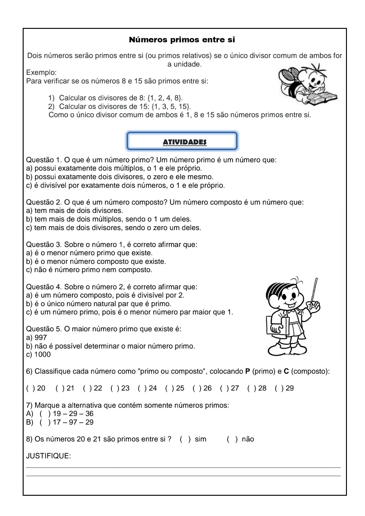 Exercícios Números Primos E Compostos 6 Ano Com Gabarito