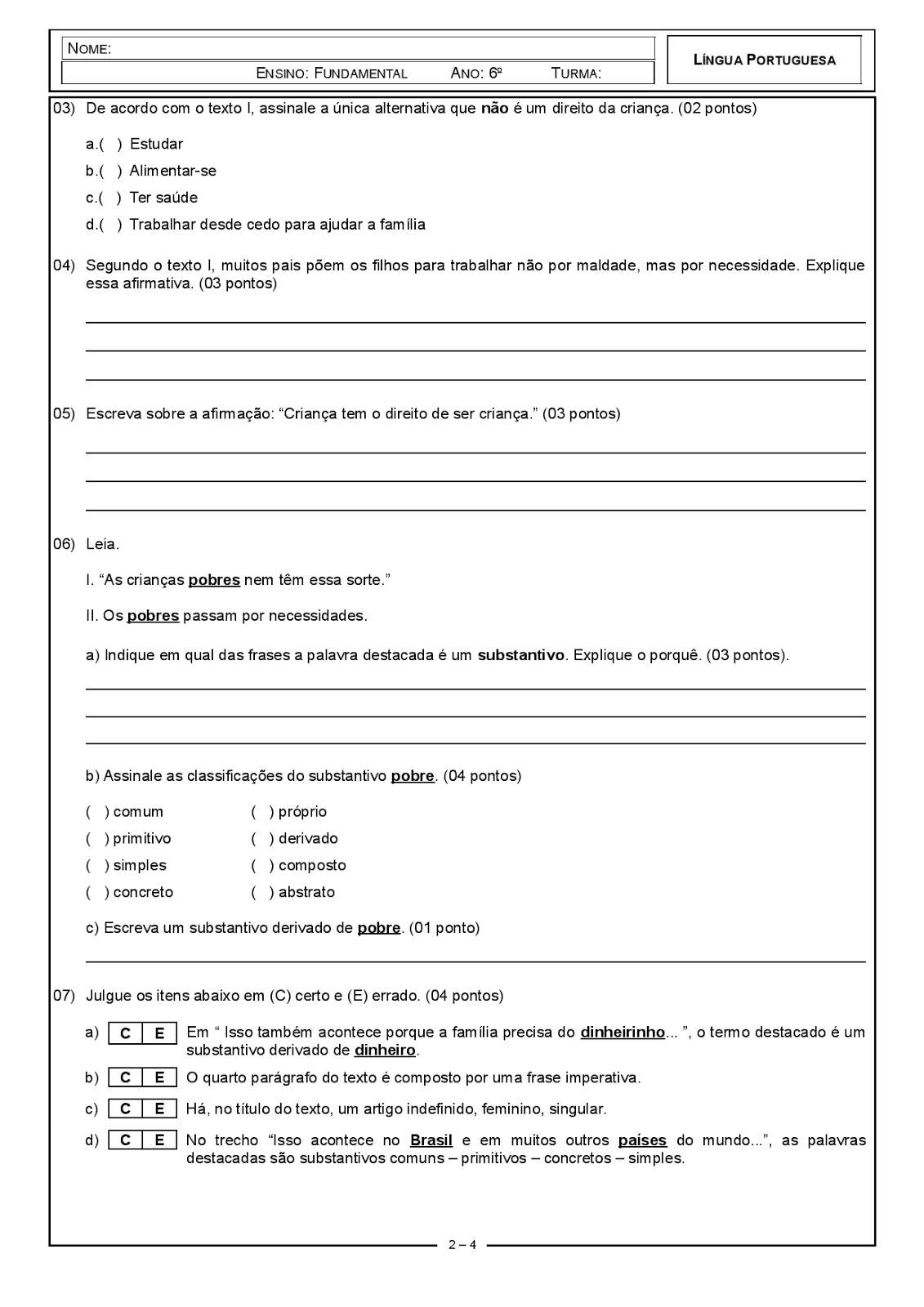 Exercicios Sobre Classe Gramatical Com Gabarito 6 Ano - EDUCA