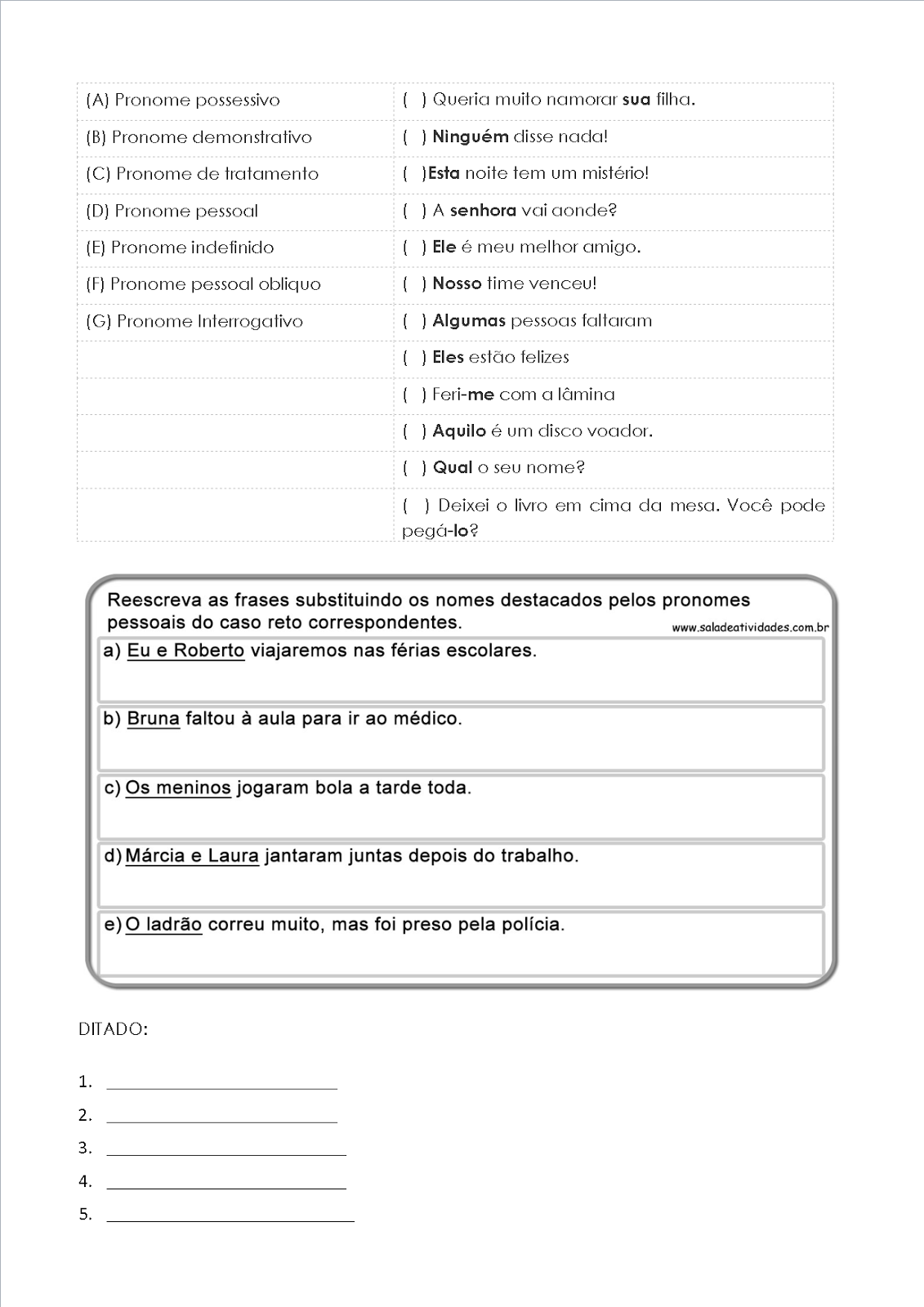 Exercícios Sobre Pronomes Com Gabarito Para O 7o Ano Pdf - BRUNIV