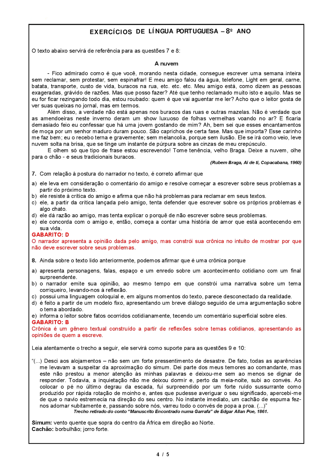 Interpretação De Texto 7o Ano Com Gabarito Para Imprimir - LIBRAIN