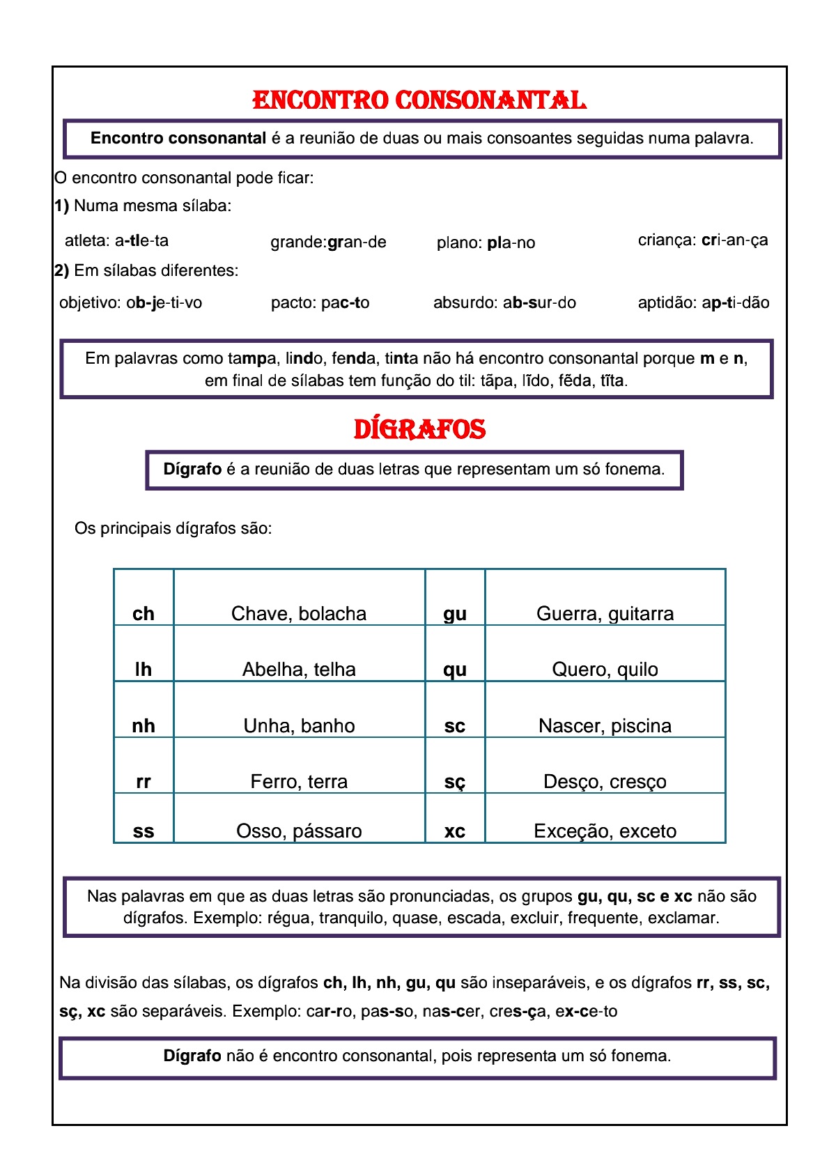 Qual A Diferença Entre Encontro Consonantal E Dígrafos