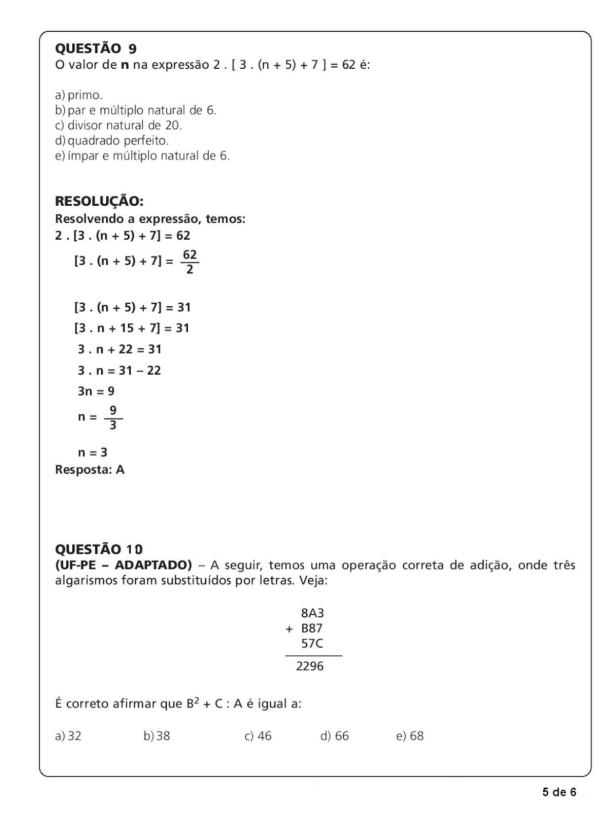 Questoes De Matematica 6 Ano
