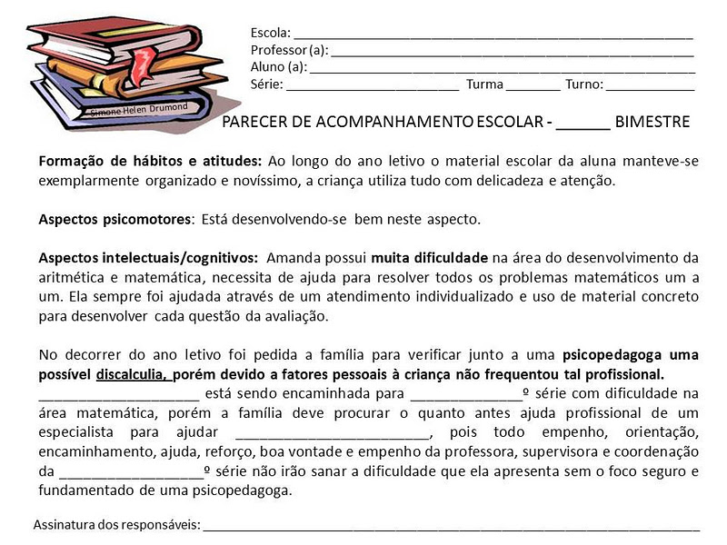 A elaboração de um "relatório para alunos com dificuldades de aprendizagem" representa uma ferramenta crucial no processo educativo, servindo como um instrumento de comunicação entre a escola, a família e outros profissionais envolvidos no desenvolvimento do estudante. Este relatório transcende a mera descrição de dificuldades, buscando fornecer uma análise aprofundada das necessidades individuais, identificar áreas de força e propor estratégias de intervenção personalizadas. No contexto acadêmico, a confecção destes relatórios exige rigor metodológico, embasamento teórico e uma compreensão abrangente das diferentes perspectivas que influenciam o aprendizado, assegurando que as informações sejam precisas, relevantes e úteis para promover um desenvolvimento eficaz do aluno.