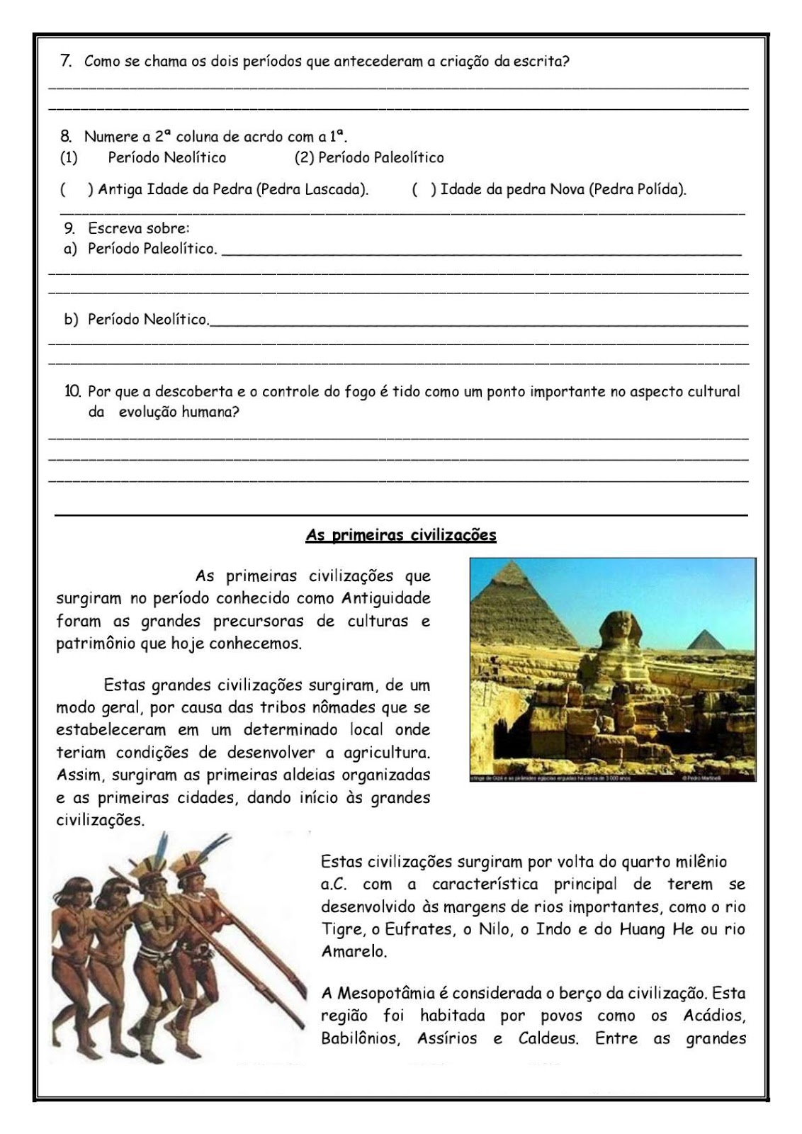 Texto Com Atividades Sobre Povos Pré-colombianos 7 Ano - BRUNIV