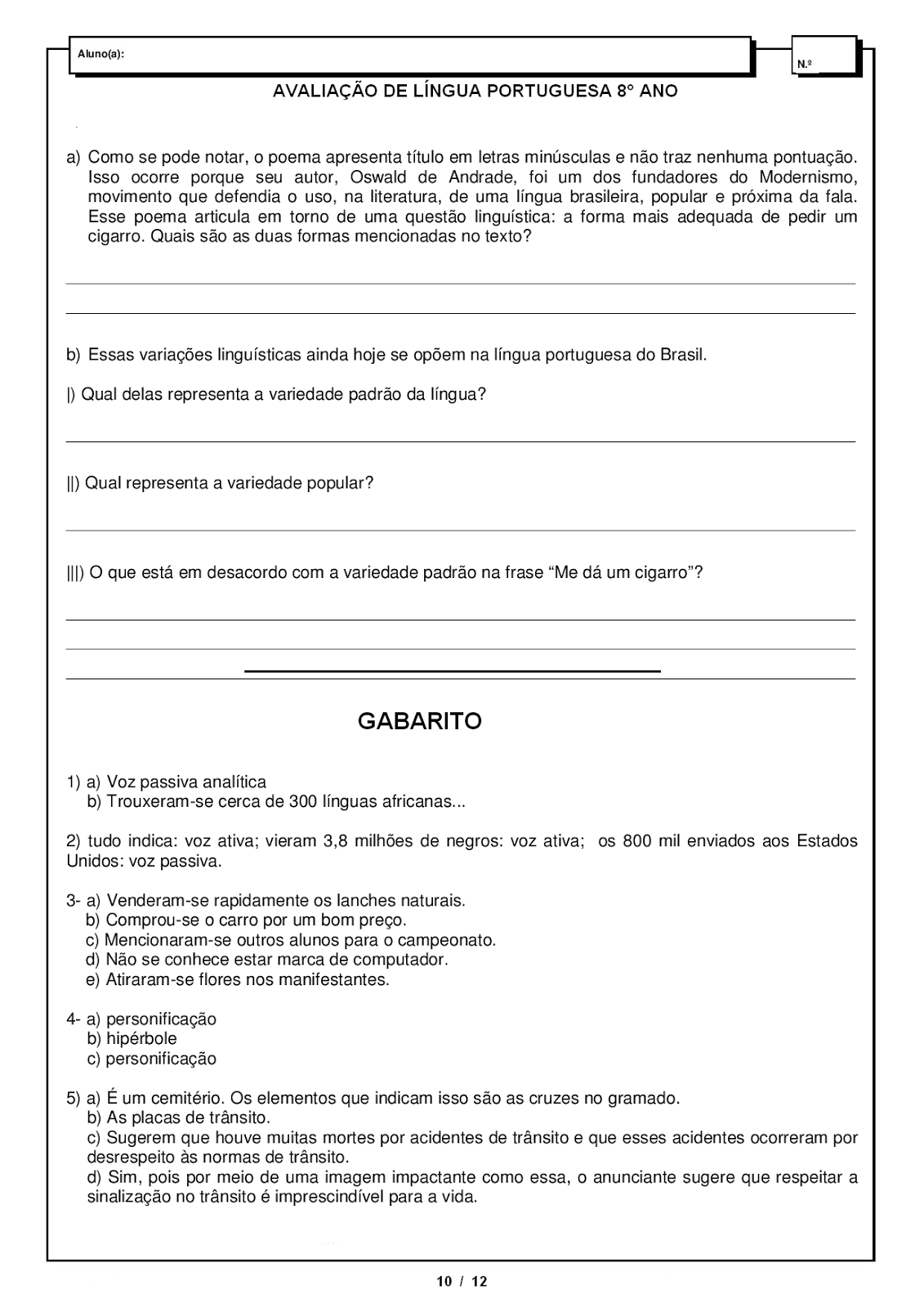 Voz Ativa E Voz Passiva Exercícios 8 Ano Com Gabarito